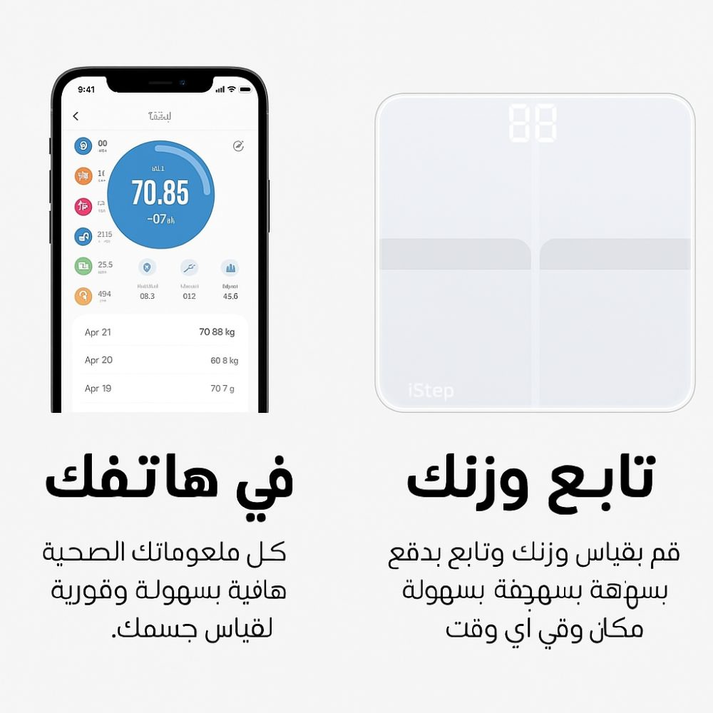 - قياسات دقيقة وسريعة تسهل متابعة الوزن.